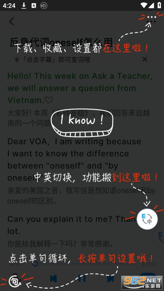 2、离线收听:离线收听节省流量,高速批量无限下载,便于随时随地学英语;