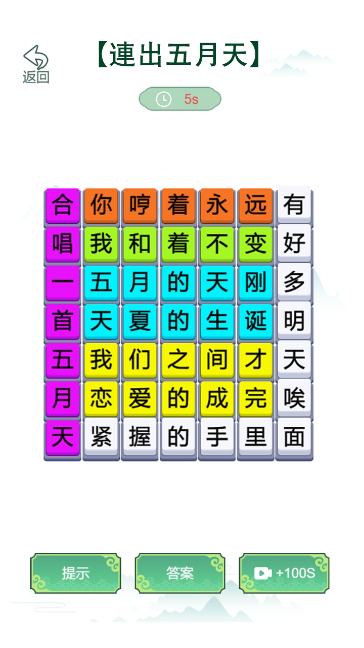 操作简单直观:玩家只需根据题目提示,在文字中找出对应的歌词并连线,轻松上手,乐趣无穷。