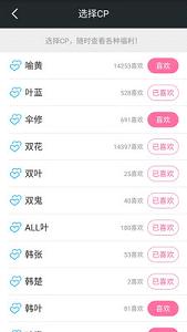 2、有贴心CP分类功能,可以按CP收图看文,再不担心踩到雷w~