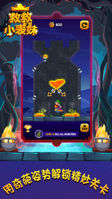 《救救小表妹》是一款密室救援的闯关类游戏,并且增加了全新的建造城堡环节:玩家在营救过程中所获得的赏金可以在城堡页面修建一栋房子居住。在解救小表妹的过程中,玩家将遇到怪物、滚石、大火和毒气的阻碍与考验;同时,游戏里提供了多种丰富和精巧的道具可以在关键时刻帮助玩家过关。所以还在等什么,叫上你的小伙伴在探险的征途上不断前进吧!