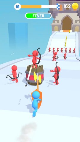 1、单手控制小人移动,一条笔直的道路,去尽情的砍杀,消灭骑士