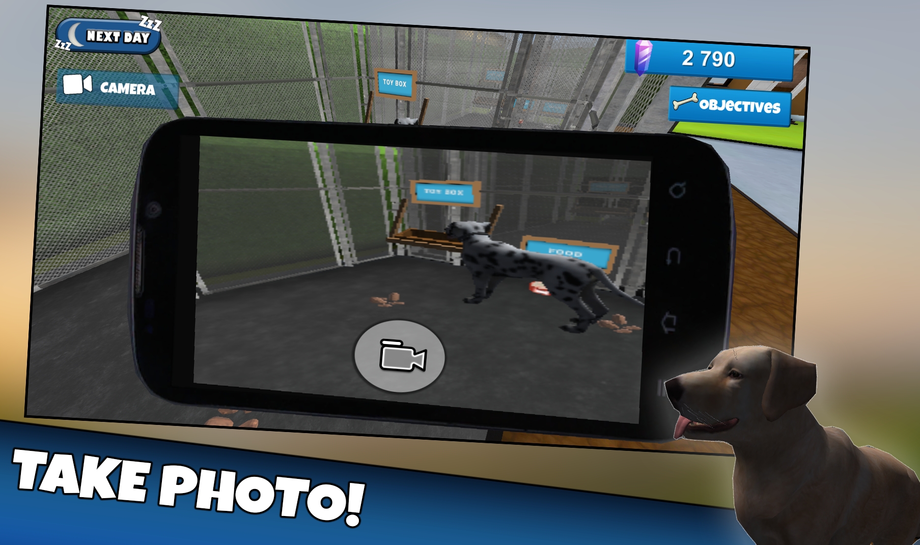 每次新的狗或猫来到您的收容所时,您都必须给它们食物、水,并与它们一起玩耍,您必须注意每只狗的需求!