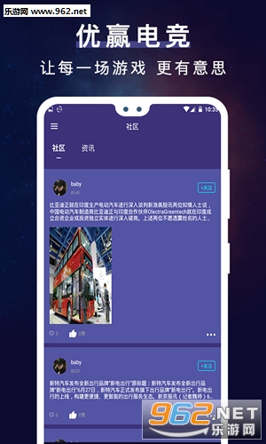优赢电竞app是一款国内专业的电竞赛事app,优赢电竞app为广大用户提供免费的最新电竞赛事和电竞资讯等及用户可以在app里面进行互动交流从而更好的获取资讯服务,优赢电竞app致力于打造一款基于了解电竞赛事和移动社交相融合的“即时社交”的手机应用。
