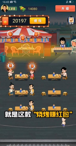 烧烤赚红包是一款非常好玩的经营类游戏,这款游戏不仅可以让玩家拥有开店的盈利的体验,还可以帮助玩家赚钱零花钱,通过经营店铺就可以获得金币奖励,兑换现金红包,感兴趣的朋友欢迎前来下载体验。
