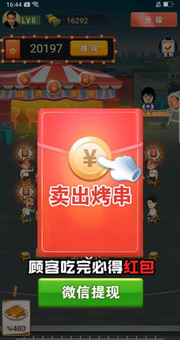 烧烤赚红包是一款模拟经营类的游戏,游戏中玩家经营着一家烧烤摊,你每天会迎来很多吃烧烤的顾客,你最主要的就是要烤制出好的烤串提供给顾客,不同的顾客的口味也是不同的,玩家需要根据不同顾客的口味进行调味。让你的烧烤店的生意更加好,吸引更多的顾客。