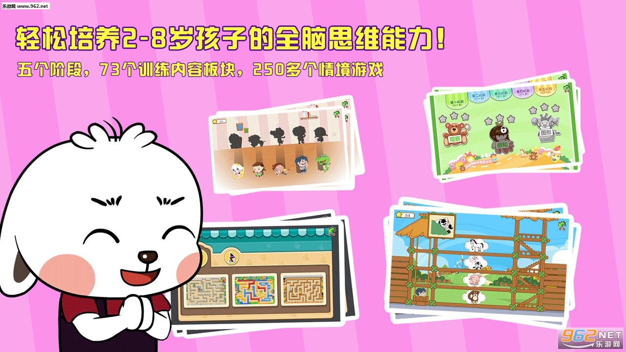 5个训练阶段,包含73个训练内容板块,250多个情境游戏,陪伴您的孩子一路成长!