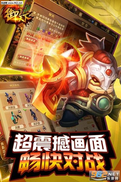 《御天下》是一款以三国为背景,结合神话传说,为您创造出一个三国征战与神话力量共存的神奇大陆。 《御天下》中您将扮演一名胸怀宏图的王者,收集108名武将一起踏上征战天下的冒险之旅。游戏以攻占城池为主线,搭配各类副本关卡,加上游戏中融合了多种玩法,包括武将养成,策略配兵,塔防建设,主城建设,9人实时组队游戏共同讨伐BOSS等。