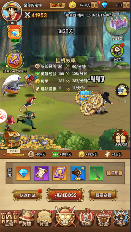 《海洋王国》开局送七武海打工七人组,充值永久0.1折!上线送VIP10、648元充值卡*1、贝里*1亿。新服登陆领豪礼,火拳艾斯、新世界索隆、四皇红发免费送。佛系挂机,离线也能升级,挂机收益永不停歇。伙伴收集重温经典,一起勇闯新世界!