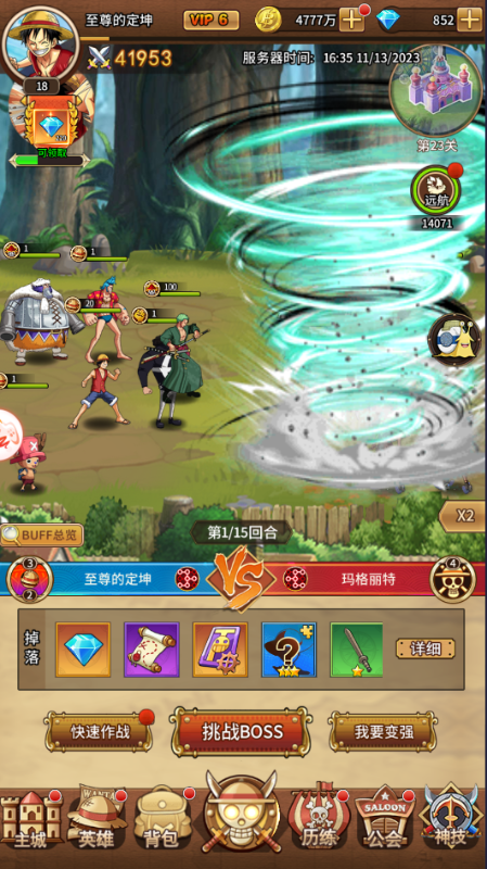 新服登录大礼:新服登录送火拳艾斯、新世界索隆、四皇红发等豪华角色,助力玩家快速成长。