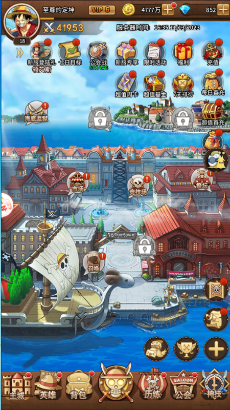 《海洋王国》以其独特的海洋冒险题材和丰富的游戏玩法吸引了众多玩家的关注。游戏开局送七武海打工七人组及永久0.1折充值优惠让玩家在游戏初期就能享受到丰厚的福利。上线即赠VIP10、648元充值卡及亿万贝里等豪华待遇更是让玩家感受到了游戏的诚意。新服登录送火拳艾斯、新世界索隆、四皇红发等丰厚大礼也为玩家提供了更多的成长机会。