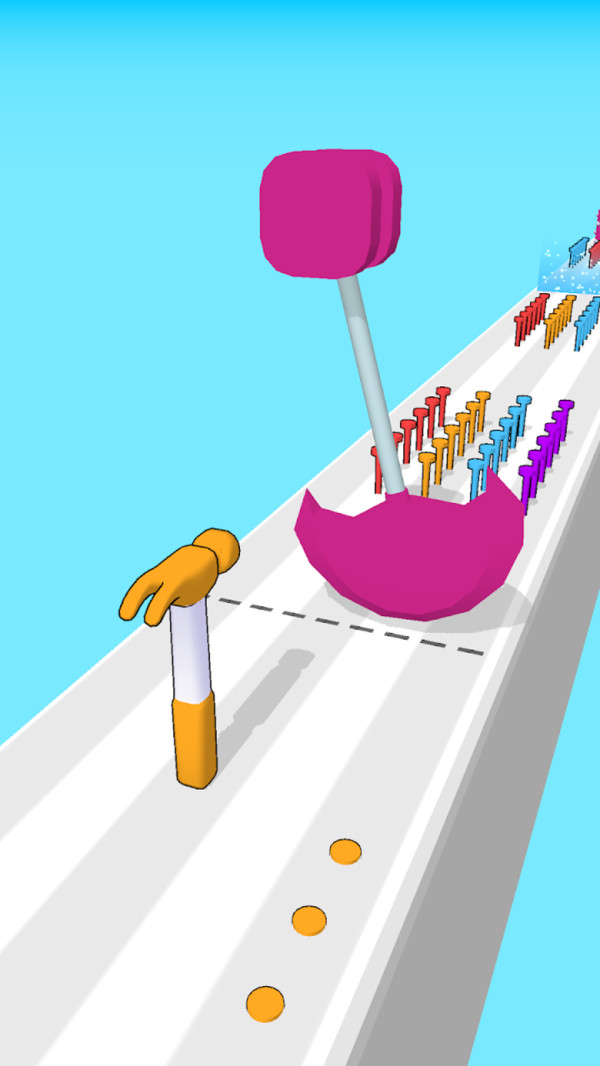 3、灵活躲避开沿途的障碍设置,快速反应捶打钉子通往胜利的终点线。