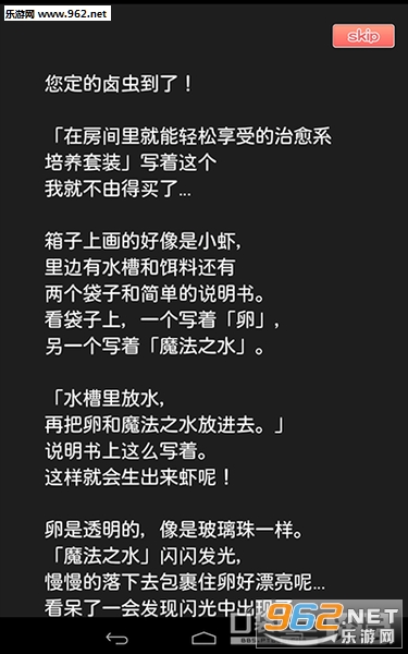 治愈系的养正太游戏……水族箱上画的明明就是个像小虾一样的卤虫,套装里还有魔法之水和饲料。卵是透明的,就像是玻璃球一样……然而养出来的不是虫子而是个可爱的正太宝宝这是要闹哪样?不但可以随时查看养成日记,等正太养成的时候还有超暖的结局等着你哟。