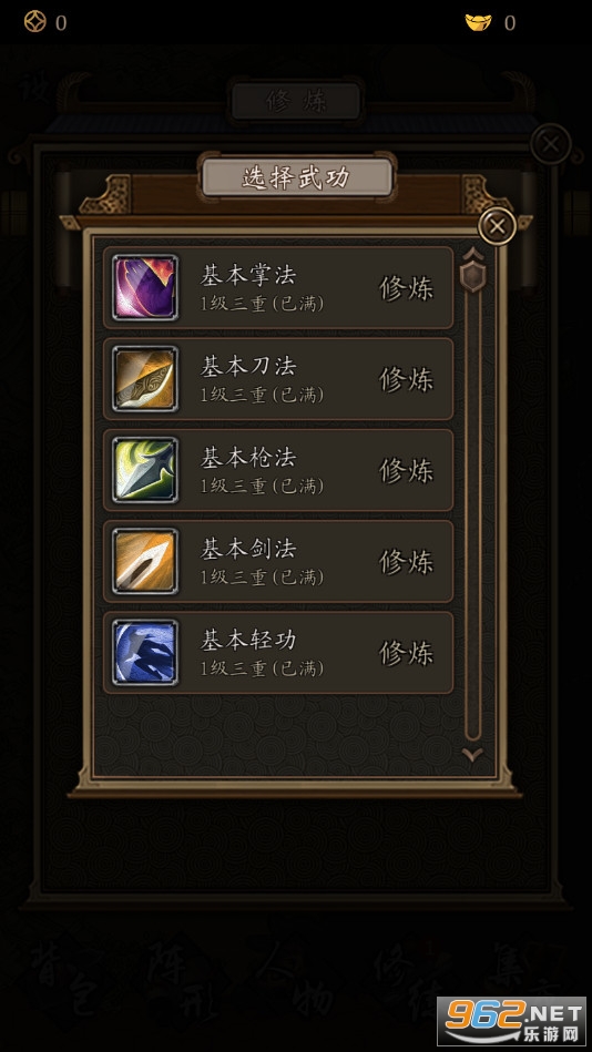 ——精选整理200多种武学招式,从拳剑刀枪,轻功,儒学乃至内功心法自由组合,镇派绝学,江湖武学,更有绝世神功等待有缘人
