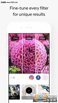 2、从33款不同艺术风格的滤镜中选择你心水的那一款,在照片上左右滑动,调整滤镜的强度。