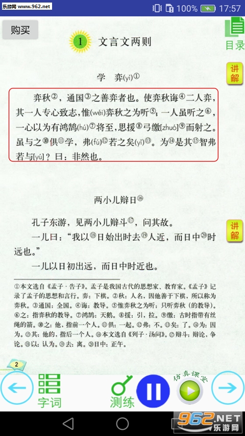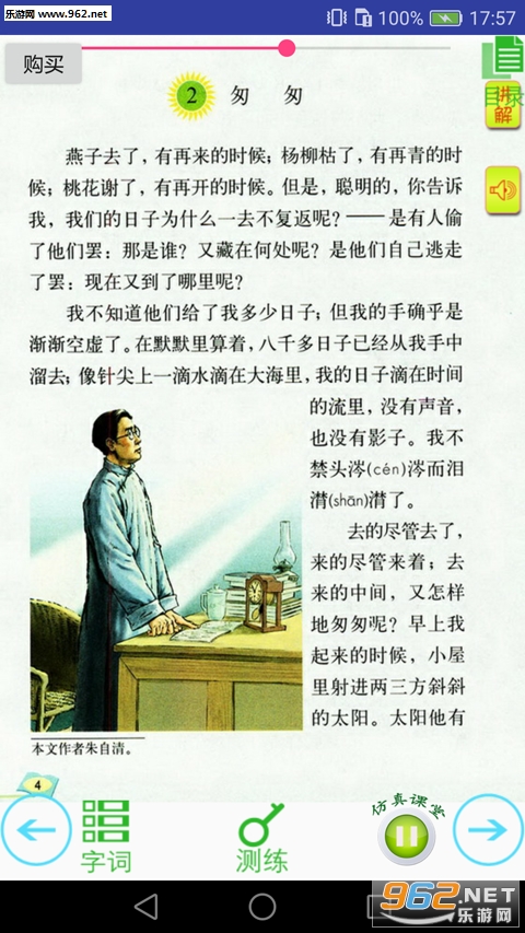 2、讲解: 北京特级教师倾情讲解,每课讲解重点包括:总结归纳课文主要内容;分段详解段落大意;赏析课文写作手法和思想;指导字词读音、书写,及运用;指导完成课后练习。从提高学生语言表达能力和提升学生思想境界两个方面精心授课,听来受益匪浅;