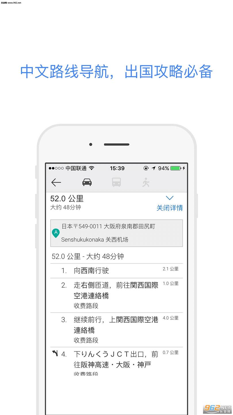 4、路线导航,地铁、公交、火车、飞机、自驾交通,与Google maps一致;