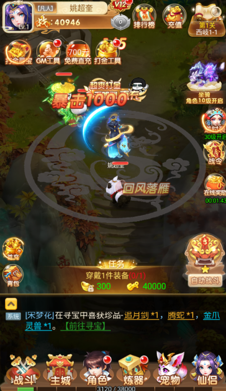 2、在线就可以来领取众多的福利,丰富的元宝和宠物的进化你可以来一一的完成;