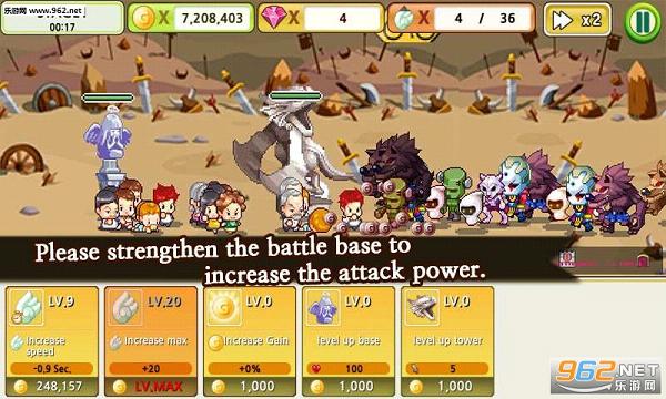 游戏采用的是横版防守类的模式,玩家需要使用金币来制造、升级士兵。这些士兵有的是婴儿,有的是老爷爷老奶奶。总之,玩家需要用这些“家人”来抵抗敌人的入侵。