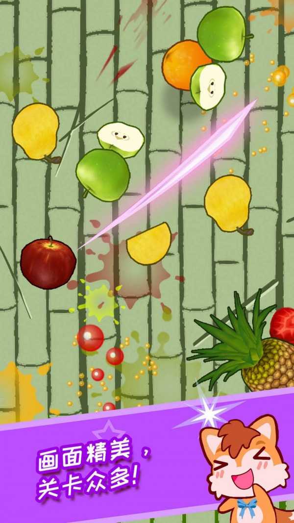 画面精细,操作易懂,只需触碰屏幕即可完成所有动作。众多过卡,众多场景,不断的挑战自我!发觉更多有趣的游戏玩法!不同的道具和不同技能让你目不暇接!舞动你的手指!一起踏上成为水果达人之路吧!