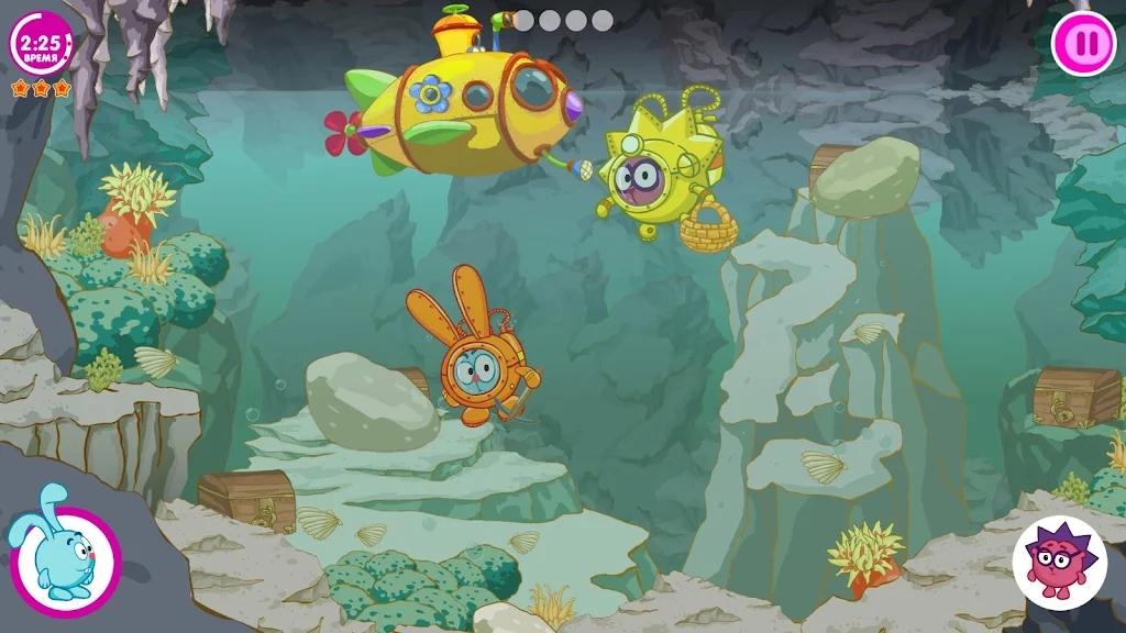 斯梅沙里基宝藏,与克罗什、刺猬、纽莎和平一起寻找海盗宝藏!你必须建造一艘潜艇,沉入海底,探索废弃的洞穴,并参加 Smeshariki 的其他冒险。朋友们会找到宝藏吗?要找出答案,请快速安装应用程序并加入游戏!