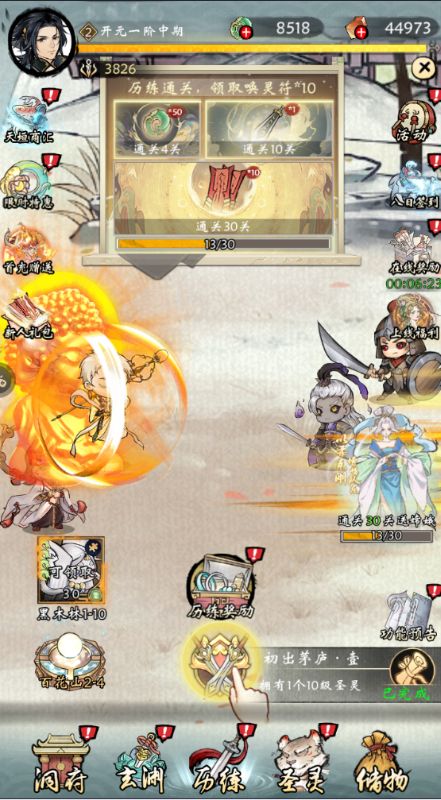 多样的玩法辅助:游戏提供多种玩法,如历练主线副本、探索蛮荒副本、激活上古神兽等,让玩家在修仙之路上更加丰富多彩。