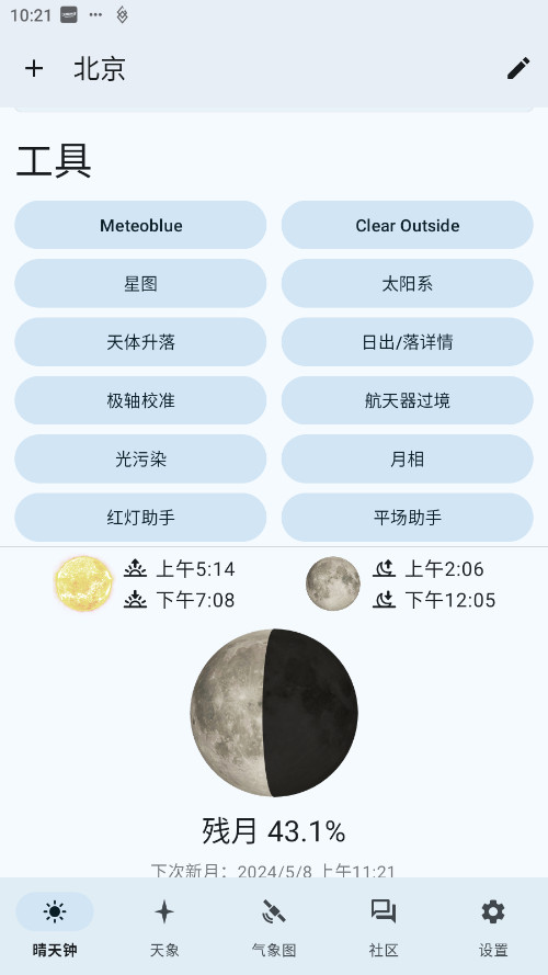 主要为天文爱好者提供专业的信息,在这款软件中有着超多专业的功能和天气预测,同时还有着非常实用的功能,让你更好的能够仰望星空,软件的操作简单容易上手,推荐给喜欢天文观察的用户。