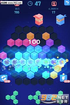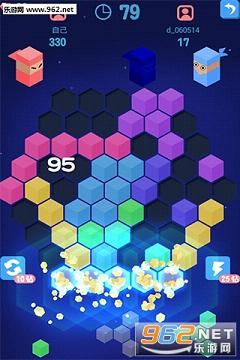 游戏中最常出现的就是颜色各异的六边形,游戏玩法类似于泡泡龙,只要达成三个或以上相同颜色的六边形就可消除。
