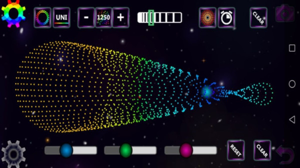 2、关于重力强度和颗粒外观,有很多自定义选项,用手指生成行星并使其移动。
