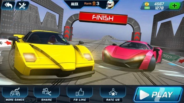 3、和其他的高手一起比拼速度,如果你的车速不够快很难第一个到达终点。