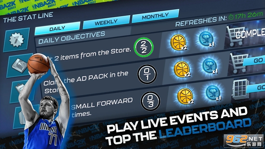 扮演职业篮球运动员,开始你的NBA之旅!完成每日目标获得奖励、收集生涯点数并获得硬币。在这个全天候常规赛、季后赛和NBA总决赛的主题中,你可以全面提升自己作为球员和NBA经理的各项能力。