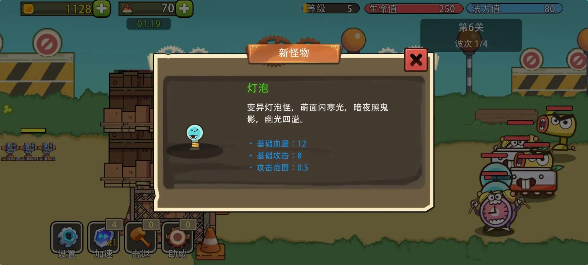 《塔防炼妖师》这是一款策略塔防游戏,部署城墙火力抵御怪物入侵。家电变异,疯狂入侵,面对变异家电的入侵,玩家需要部署武将,提升城墙的防御力,一起来抵御家电怪的入侵吧。