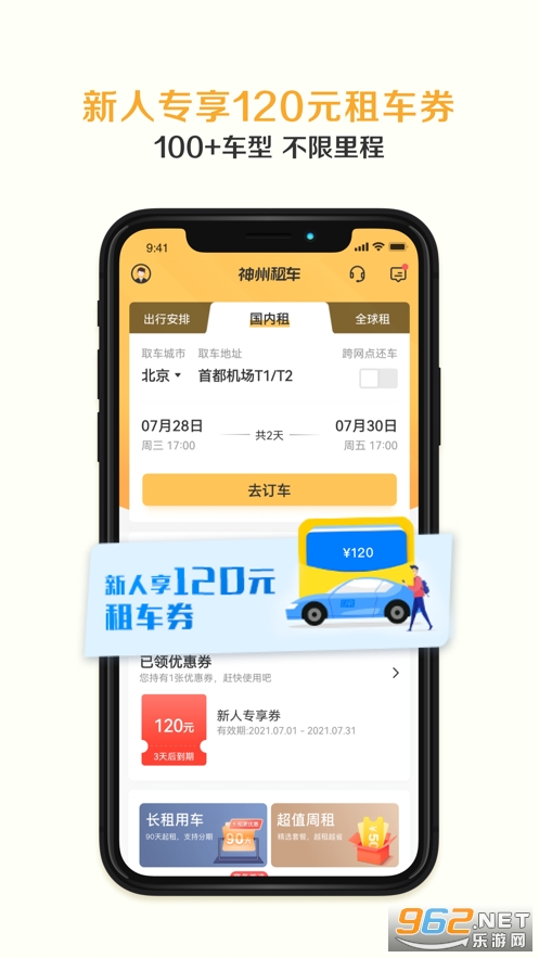 全国2000+网点,100+车型,不限里程,7*24小时客服服务