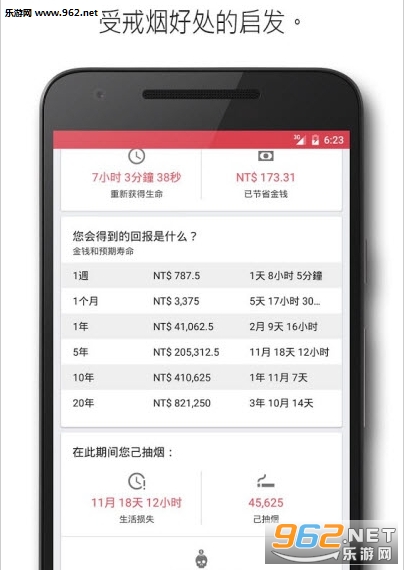 戒烟助理app是一款帮助你戒烟的软件,应用界面不错,可以实时显示自己戒烟的进度,还可以看到各种关于吸烟的危害,当你想吸烟的时候打开看看你浪费的多少钱,顿时吸烟的欲望就少了一半,欢迎有需要的朋友下载使用。