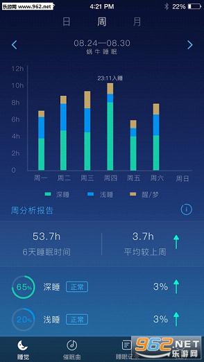 蜗牛睡眠安卓版是一款睡眠记录应用。该软件能够很好的记录下你的各种睡眠情况,里面的催眠音乐能在你心烦意乱睡不着时帮你收拢思绪,催你快速入睡,喜欢的话不要错过哦。