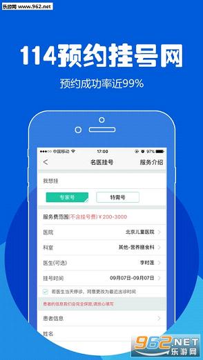 114预约挂号网,针对看病挂号难,挂专家号更难,排队太久等问题,特别推出的一款移动健康服务平台。能够帮助患者挂全国重点医院专家号与特需号,是百姓看病的首选平台!