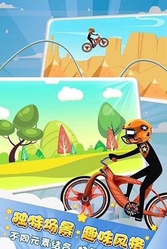 游戏玩起来非常的有趣,玩家可以在游戏中尽情的进行赛道挑战,里面的关卡都为无尽模式,就看谁的自行车技术高超,跑的更远,赶紧下载游戏试试吧