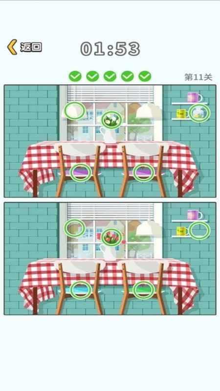 游戏不错。通过找不同来锻炼自己的观察能力。不知不觉就玩了很长时间。