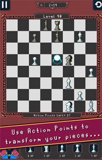 本作是一款颇有意思的解谜游戏,游戏规则建立在国际象棋的基础上,同时加入棋子不能移动的特殊设定,在这种情形下玩家要将自己的棋子转换成其它棋子,然后将对方的国王将死获得胜利。