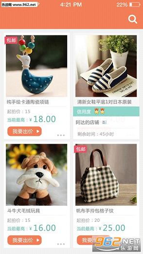 二手拍——顾名思义是拍卖二手商品。在二手拍卖网app里,你可以以低价淘到想要的宝贝;也可以将手里闲置的二手物品拍卖给他人。让你变废为宝,赶紧拿起手机行动起来吧!