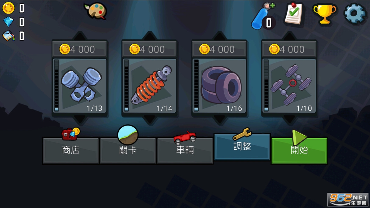 此外玩家还可以升级车辆的四大部件,让车子获得更好的驱动力、弹跳和平衡性,争取到达更远的距离。