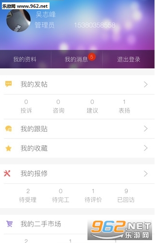 2.可以实时查看新闻通知、二手市场、网络维修等动态信息。