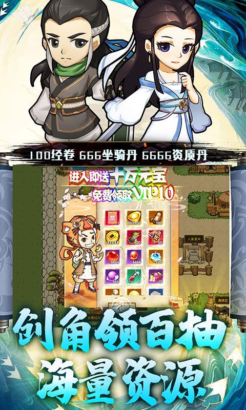★创角即领百抽,50高级抽,100经卷,666坐骑丹,6666资质丹、破障丹等海量资源