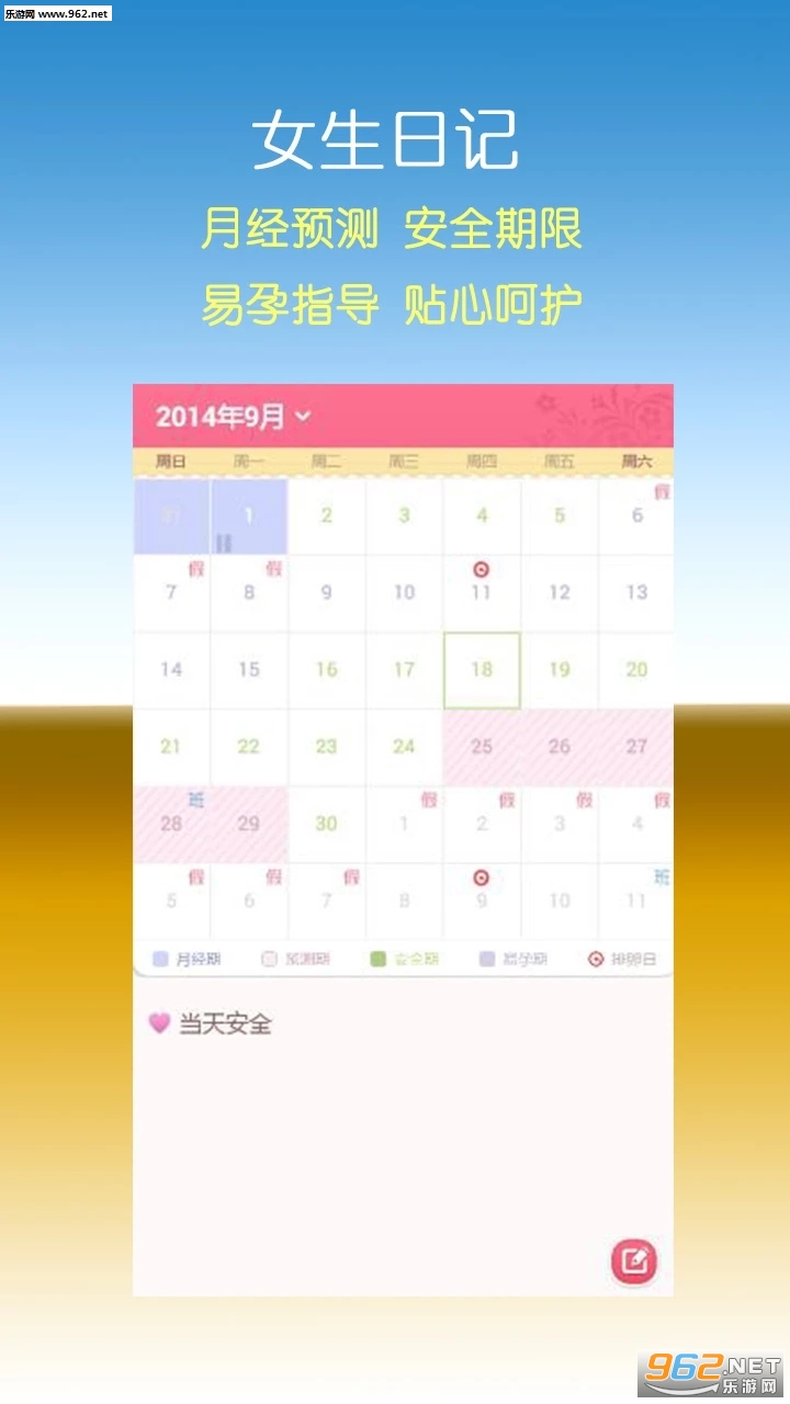 6.女生日记:月经期、预测期、安全期、易孕期、排卵期轻松标记,给你带来贴心呵护。