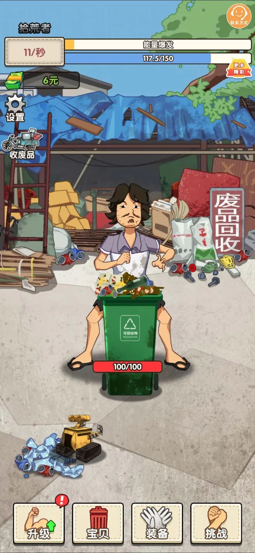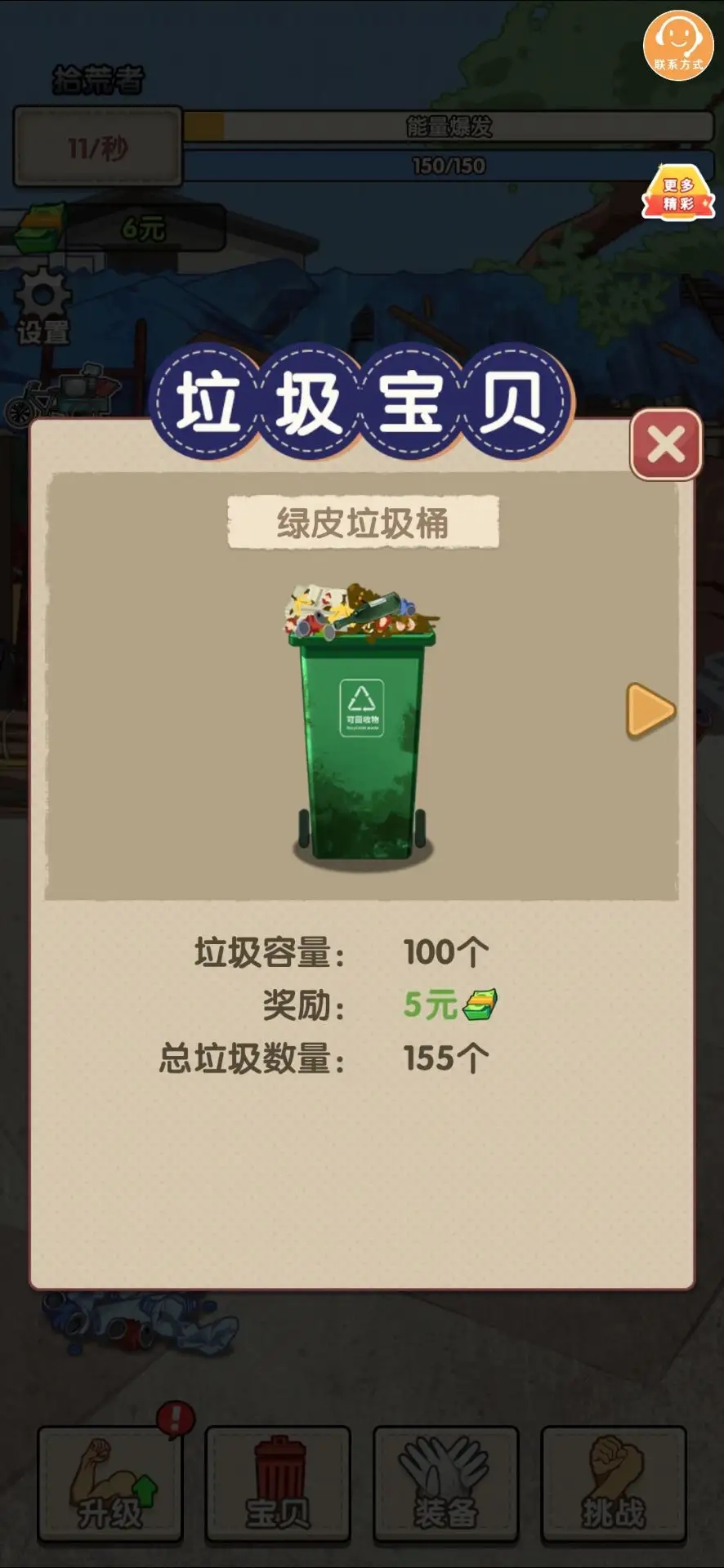 1、疯狂点击垃圾桶,找寻宝藏,获取金钱!