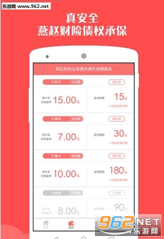 乐行理财app是一款在线金融投资平台。平台与玖富进行深度合作,为投资者提供了高收益低门槛的理财项目,让用户能够有一个安心理财选择。有需要的用户欢迎下载使用。