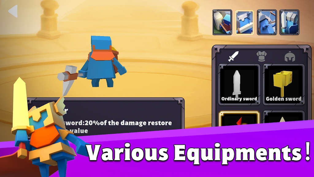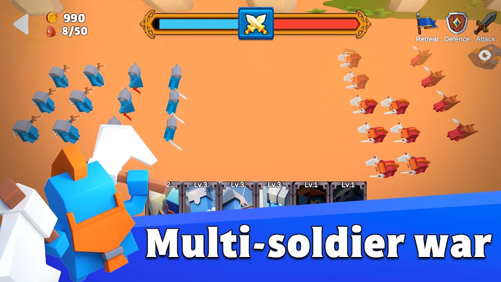 个性装备:击败敌人获得宝箱,解锁强力装备,个性化士兵,集结属于你的强力士兵。