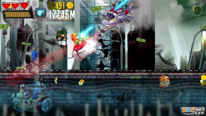 非常赞的横版跑酷游戏,画面上给人惊艳感,跑酷也是用划船的炫酷方式,配合射击的操作玩法,酷毙了。