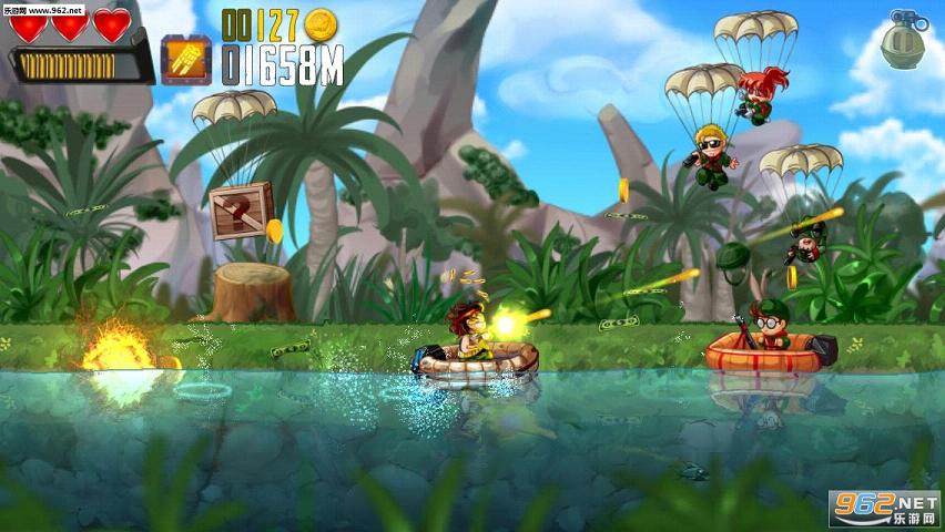 河道勇士:射击和短跑独特融合街机,射击和亚军游戏的流派,产生疯狂的动作和无尽的奇遇的最好的一场比赛。帮助曼波和他的英雄部队的疯狂,从数百个敌人逃跑,跳跃,尽可能快地避开上一些最美丽的工艺品的背上开火,而无比强大的武器。你喜欢Jetpack的兜风?你沉迷于合金弹头?那么你一定会喜欢Ramboat!