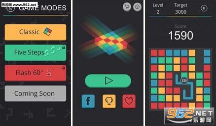 被消除的方块会被上方的方块部位,让玩家可以更好地进行规划。目前游戏中有3中模式,除了经典模式之外,还有5步模式和60秒的限时模式,玩家可以在游戏中不断的挑战自己。