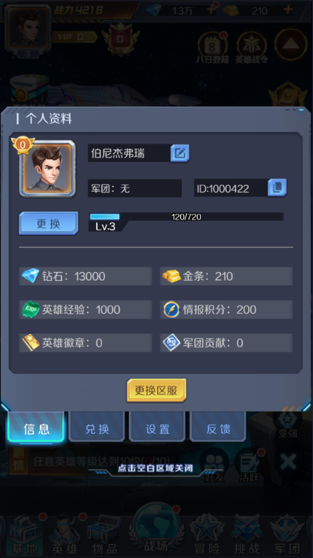 3、王牌招募:招募的升级版,玩家可招募指定阵营的英雄,每次招募必出四星以上的英雄,该界面还有交换功能,玩家可将已有的英雄置换同阵营的其它英雄